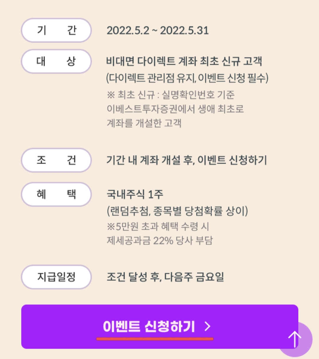 계좌만 개설한다고 자동으로 이벤트 신청되는 게 아니니 개설 후 다시 돌아와서 꼭 이벤트 신청을 해주세요.