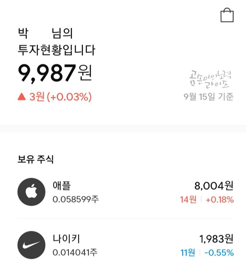 나머지 2,000원은 랜덤으로 나이키 주식을 받았어요.