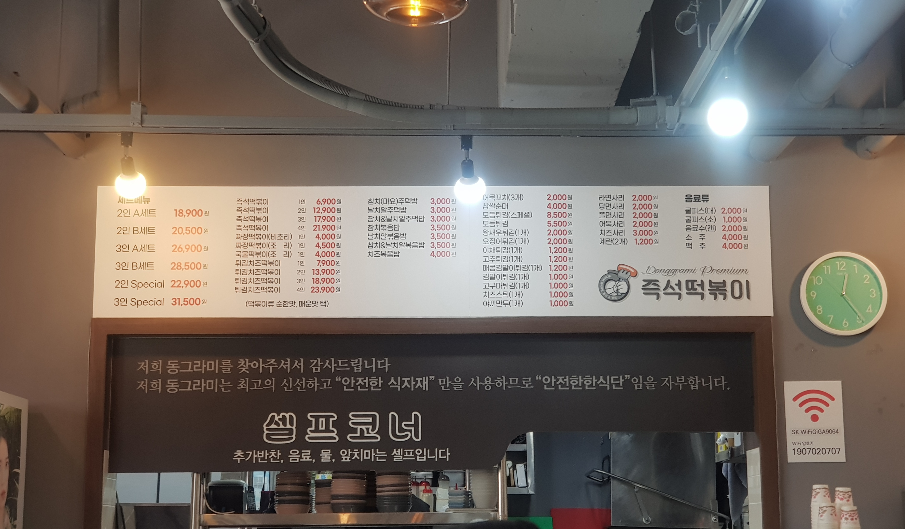 엄청난 즉석떡볶이의 양과 다양한 종류의 튀김을 생각하면 전혀 비싸지 않은 가격이에요😀