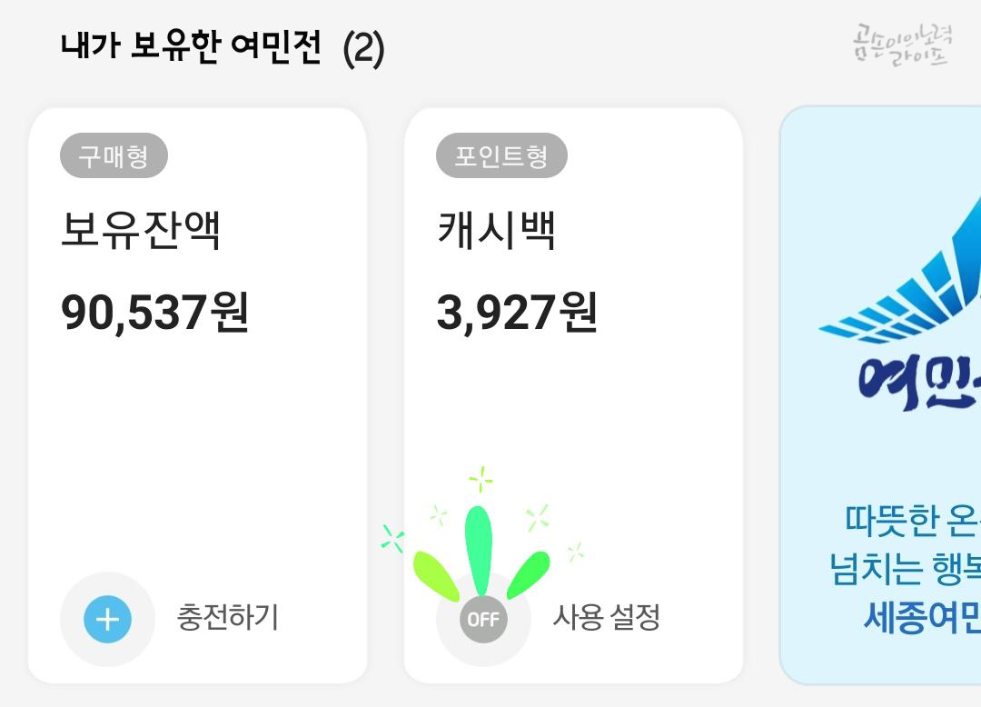 저는 친정과 직장이 있는 지역의 화폐를 모두 발급받아