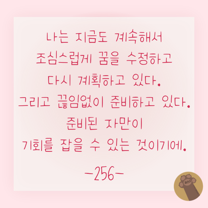 학창 시절에 제 좌우명은 '기회는 노력하는 사람의 것!'이었어요. 성실하게 준비하는 사람만이 좋은 기회를 잡을 수 있다고 여기고 꾸준히 노력했던 때가 있었죠.