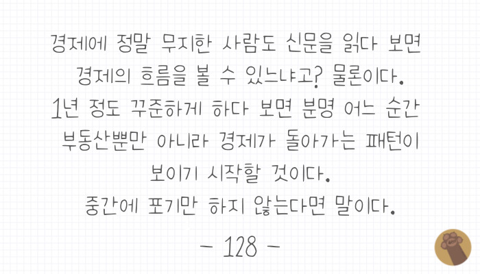 아직까지는 신문을 읽어도 이해가 안 되는 부분도 많지만, 1년 정도 꾸준히 읽으면 경제를 보는 눈이 떠진다고 하니 의심하지 않고 더 열심히 읽어보기로 했어요.