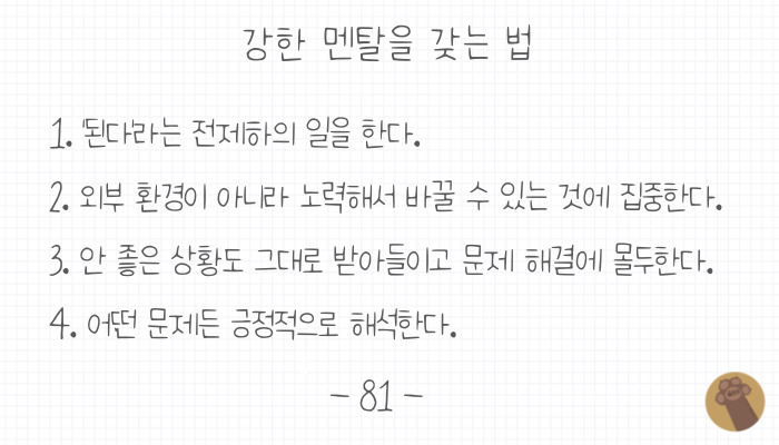 실행력이 있어도 지속할 수 없다면 성공할 수 없을 테니 강한멘탈 또한 부자가 되기 위한 필수 요소입니다.