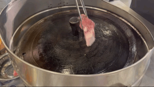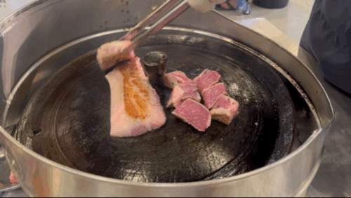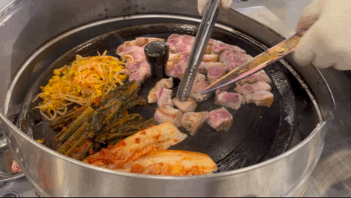 거대한 솥뚜껑 등장과 동시에 직원분께서 직접 잘라서 구워주세요.대접받는 기분🥰