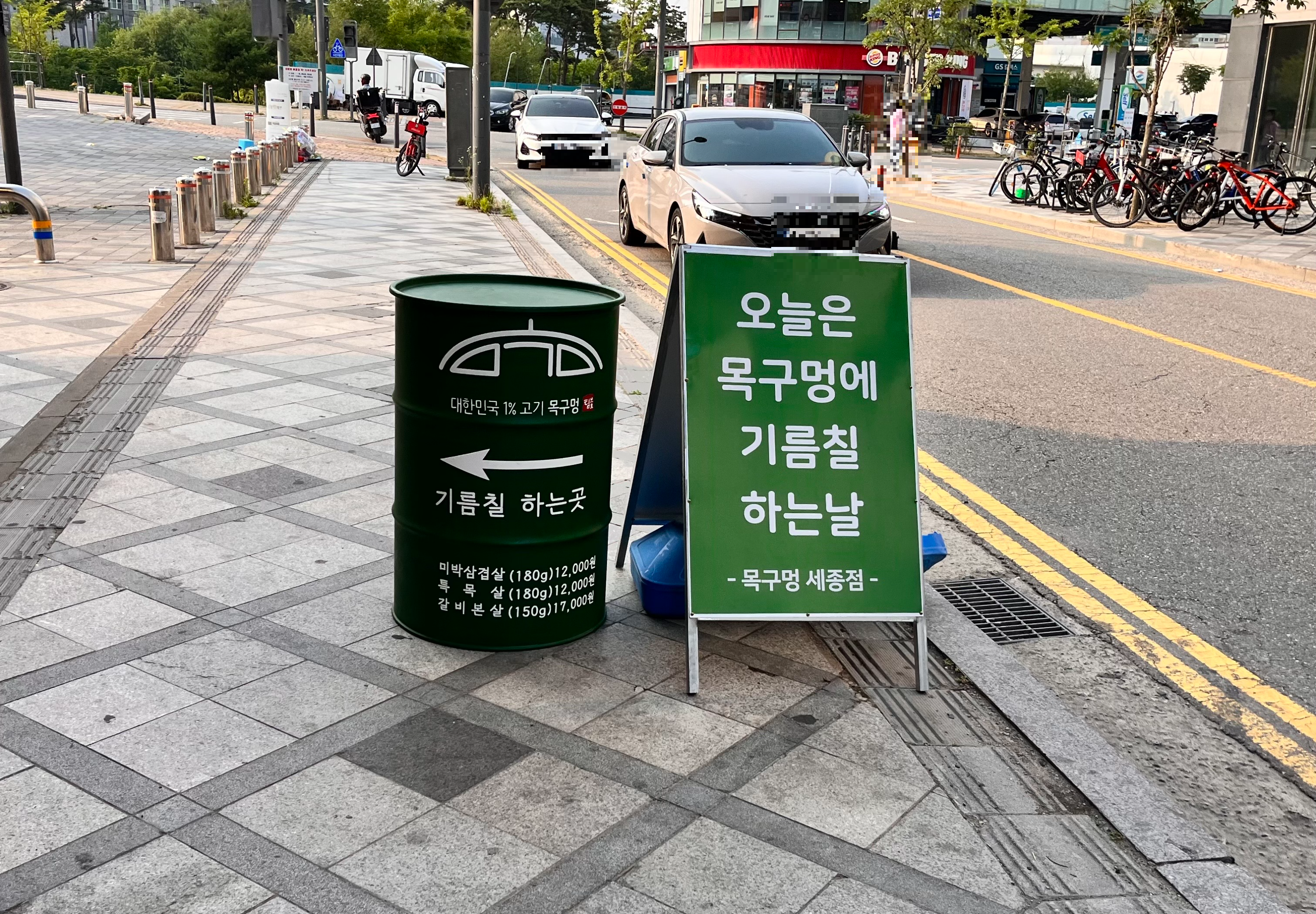 마지막으로 기름 방패까지 두르면 완벽하게 고기 먹을 준비 완료❤