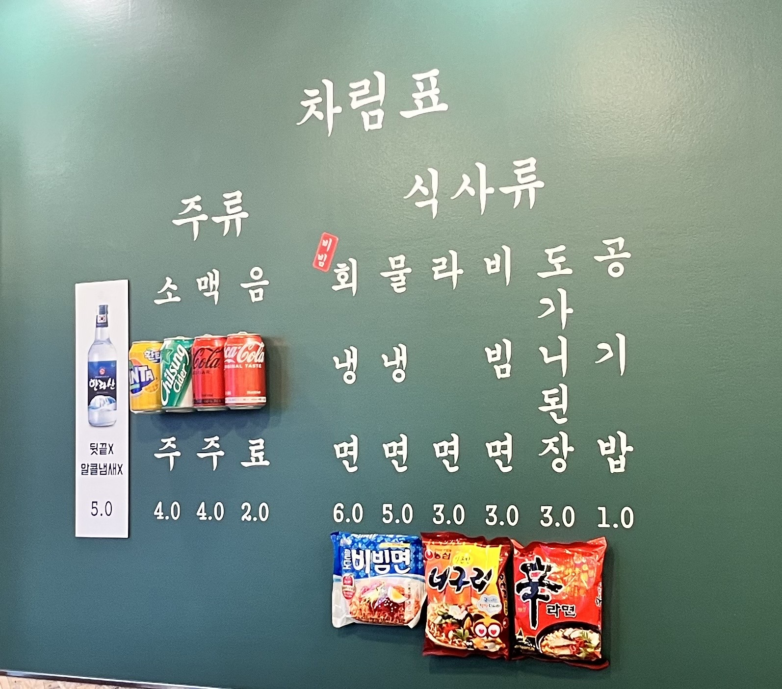 메뉴판에 진짜라면이랑 음료수 붙어있는 게 넘 재밌더라고요.