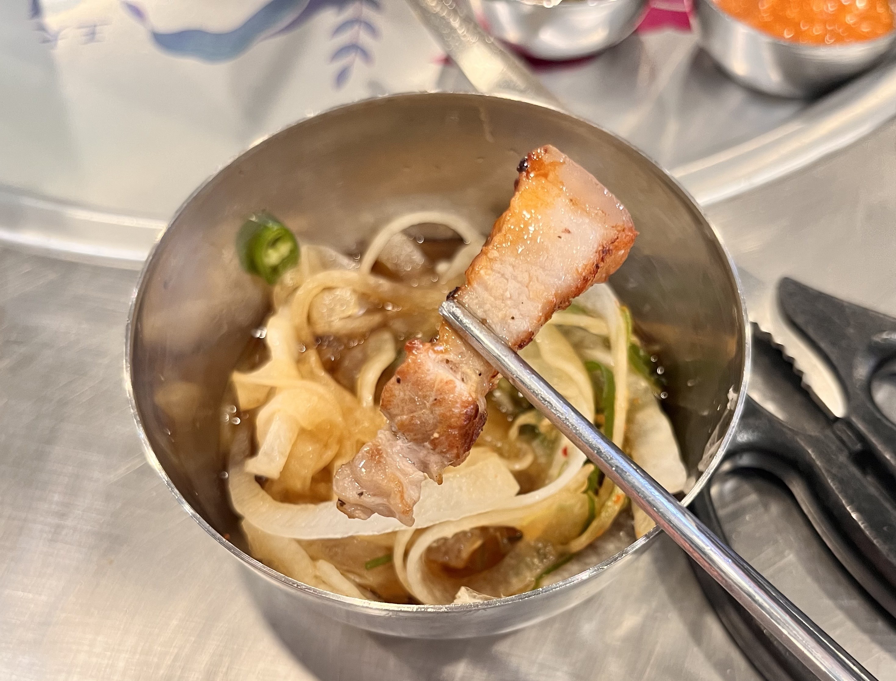 굳이 고른다면 저는 삼겹살이 더 맛있었어요.