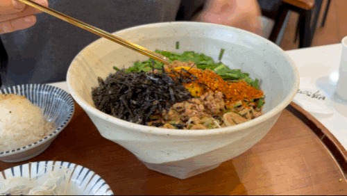 면을 조금 먹은 다음에 다시마 식초를 골고루 뿌려먹으면 더더 맛있대요.