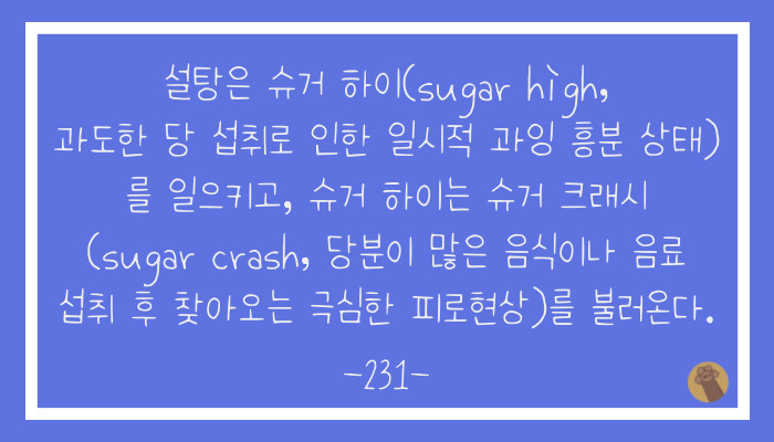단 음식을 최대한 줄여야 하는 이유는 설탕이 활력을 잃게 만들어 피곤에 찌들게 하기 때문이에요.