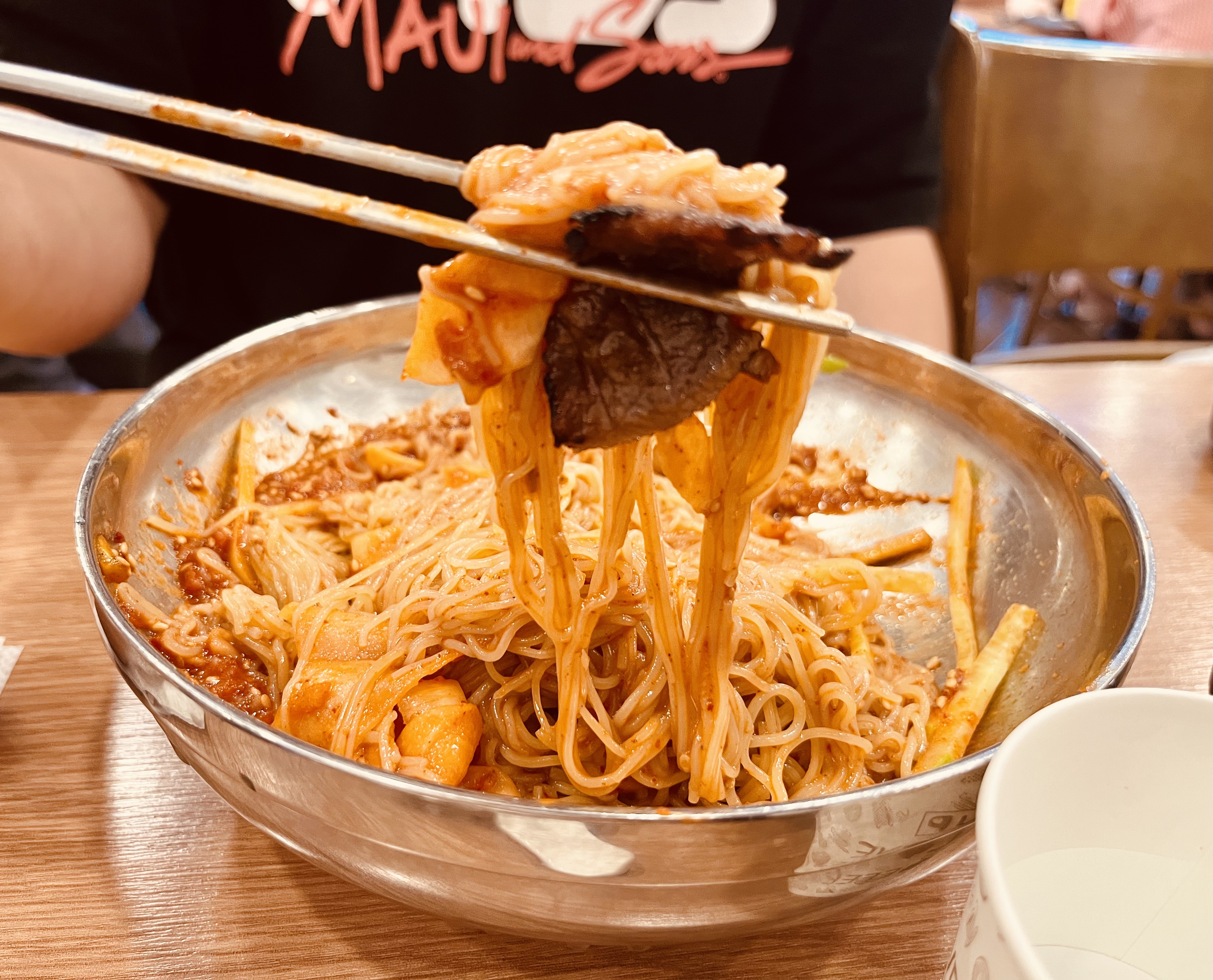 특히 비빔냉면의 매운맛을 숯불고기가 싹 잡아줘요.