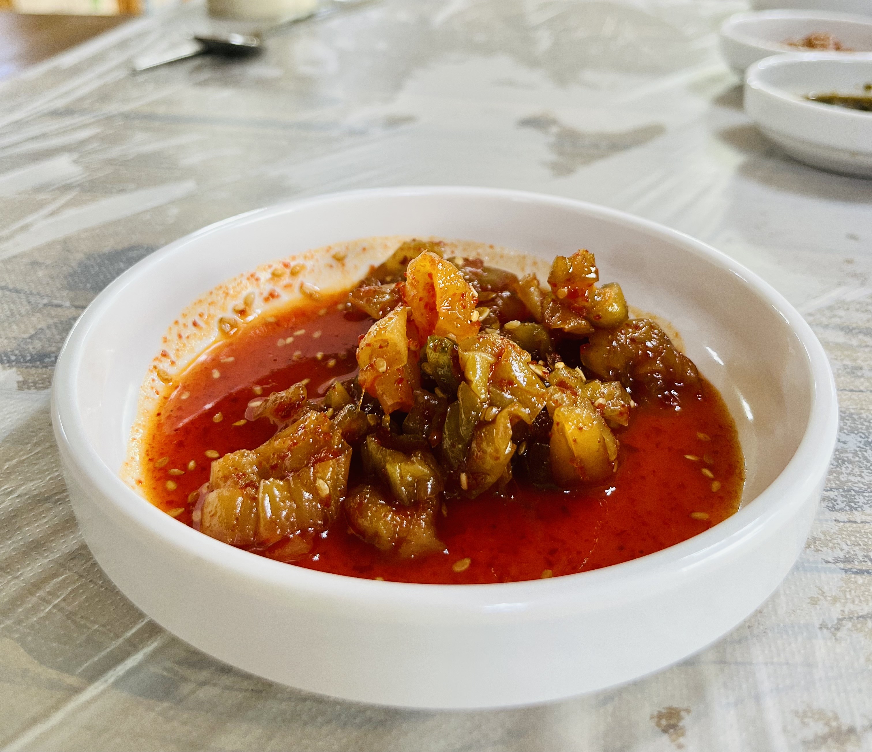 오이장아찌, 고추, 김치도 있어요.