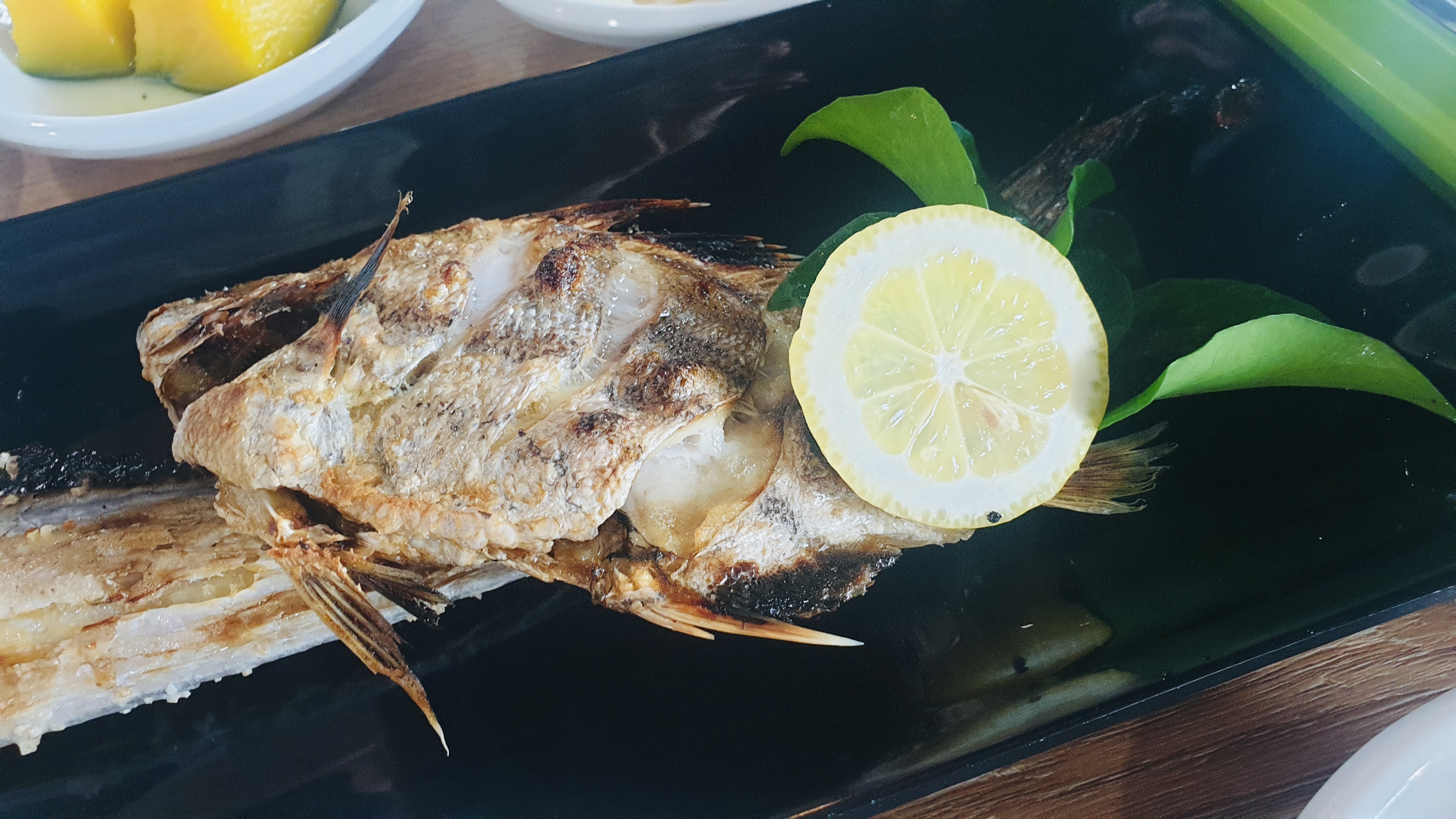 맛있게 구워진 통갈치는 껍질은 바삭하고 속은 촉촉해서 겉바속촉한 맛을 즐길 수 있었어요.