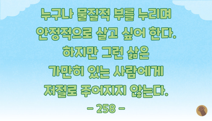 이런저런 문제가 있어서 못 하겠다고 하지 말고 어떻게 하면 해결할 수 있는지를 먼저 고민하는 습관을 가지는 게 부자로 가는 길이라는 것, 잊지 말아요.