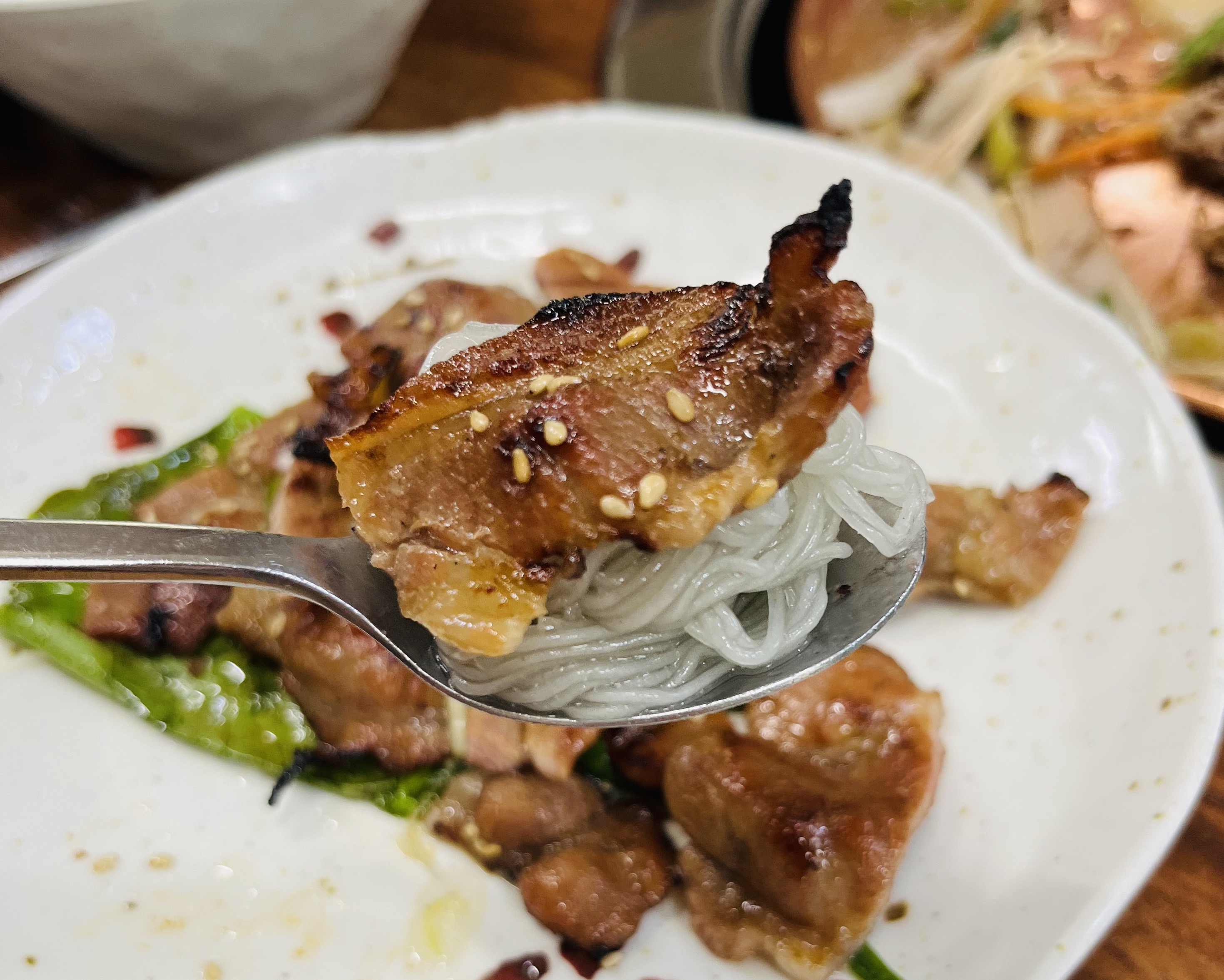 쌈 싸 먹어도 맛있고, 밥이랑 반찬이랑 먹어도 맛있어요.전골에 함께 끓인 당면도 아주 맛나고요.