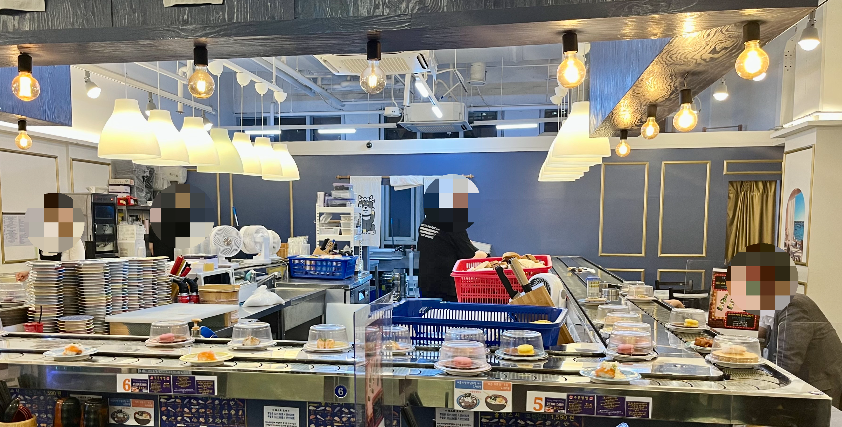 올진스시는 회전초밥 전문점인데, 모든 접시가 1,590원이에요.