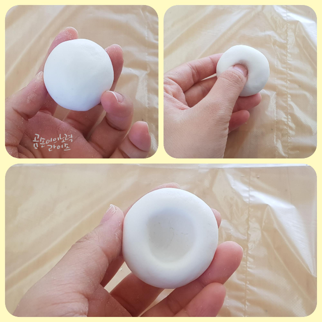 가운데 부분을 손가락으로 꾹 눌러 동그란