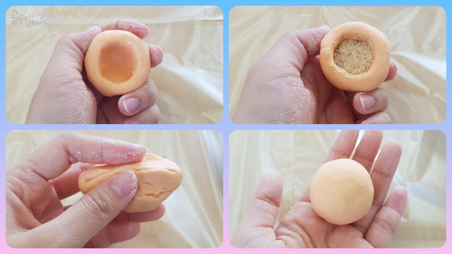반죽을 돌려가며 소가 들어갈 자리를 만들어 주세요.