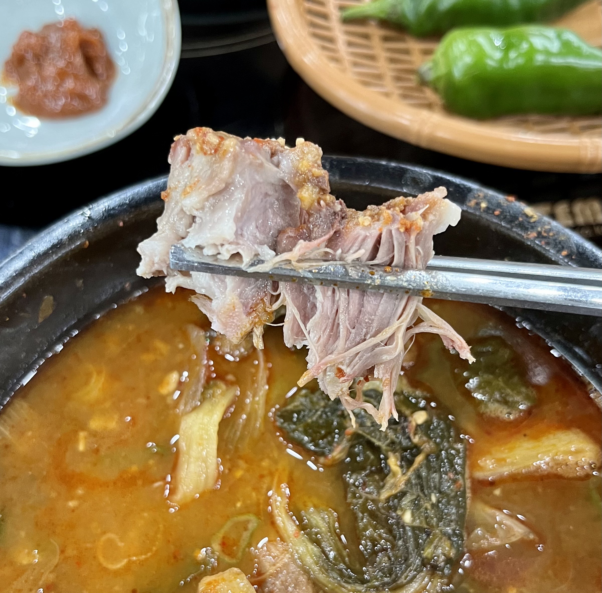 이곳 뼈다귀탕이 특히 맛있었던 이유는 시래기와 고기가 아주 부드러웠다는 거예요.