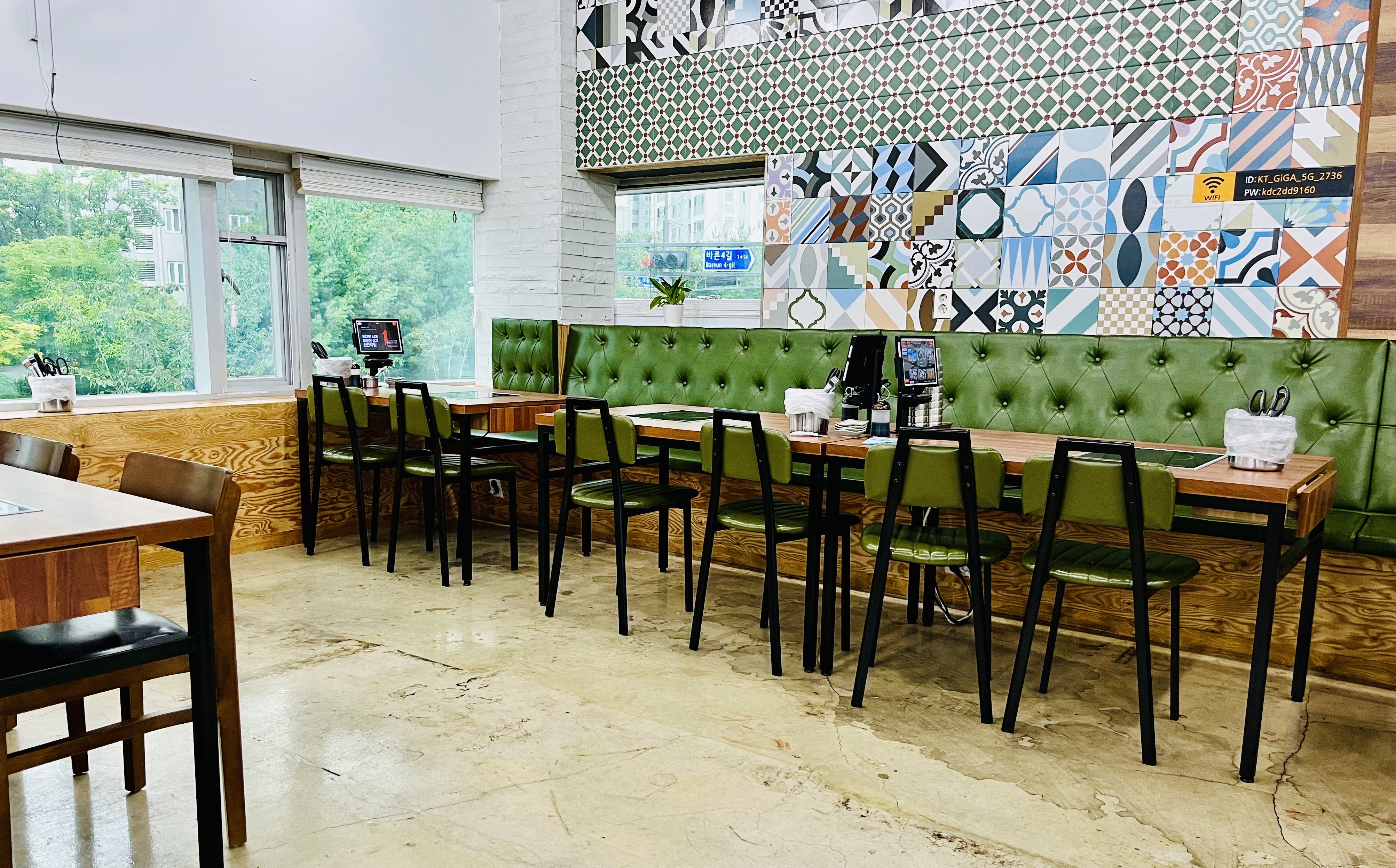 벽 쪽 테이블은 카페 느낌이에요.