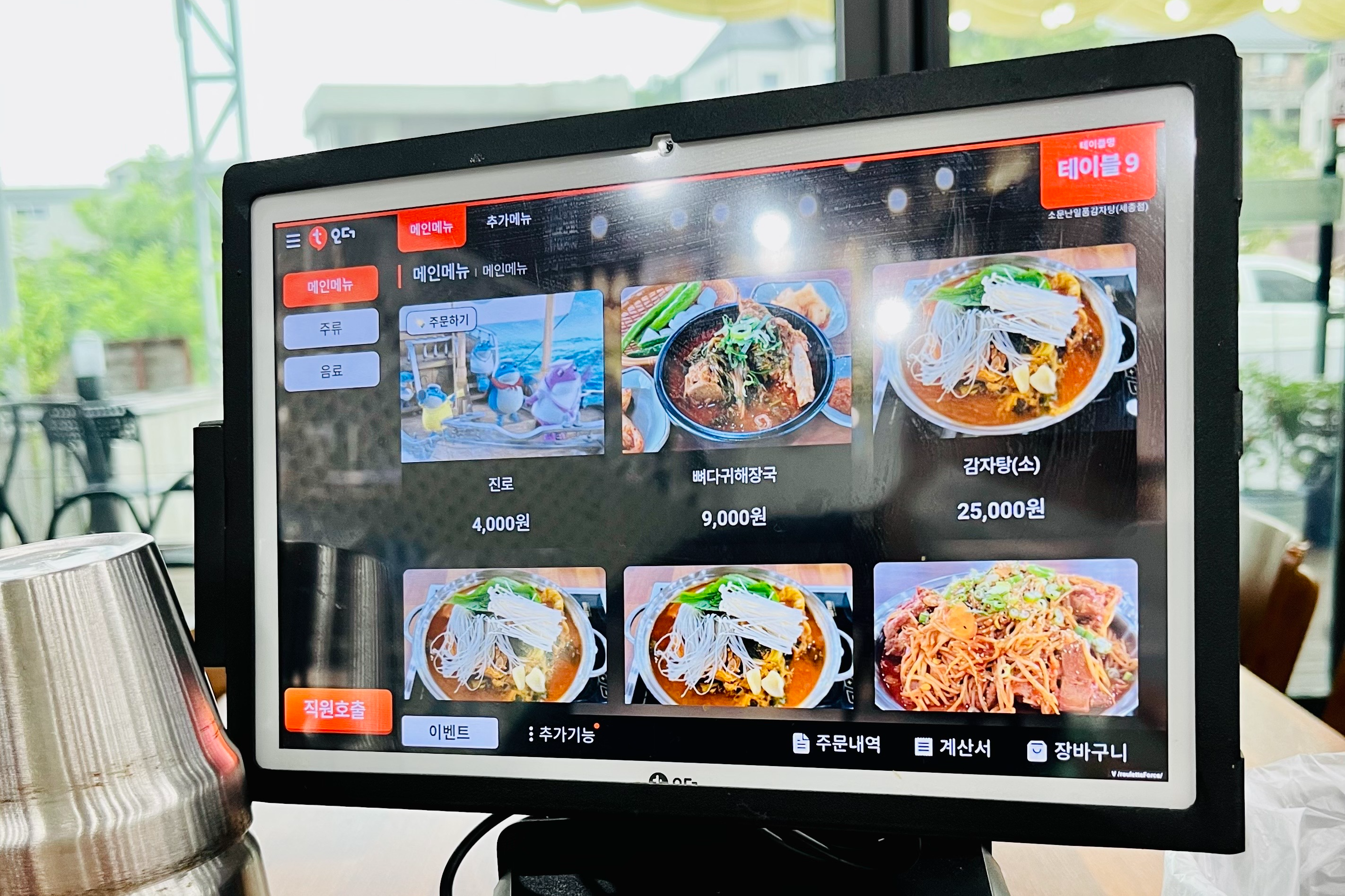 소문난 일품감자탕은 테이블에서 패드를 통해 주문할 수 있어요.