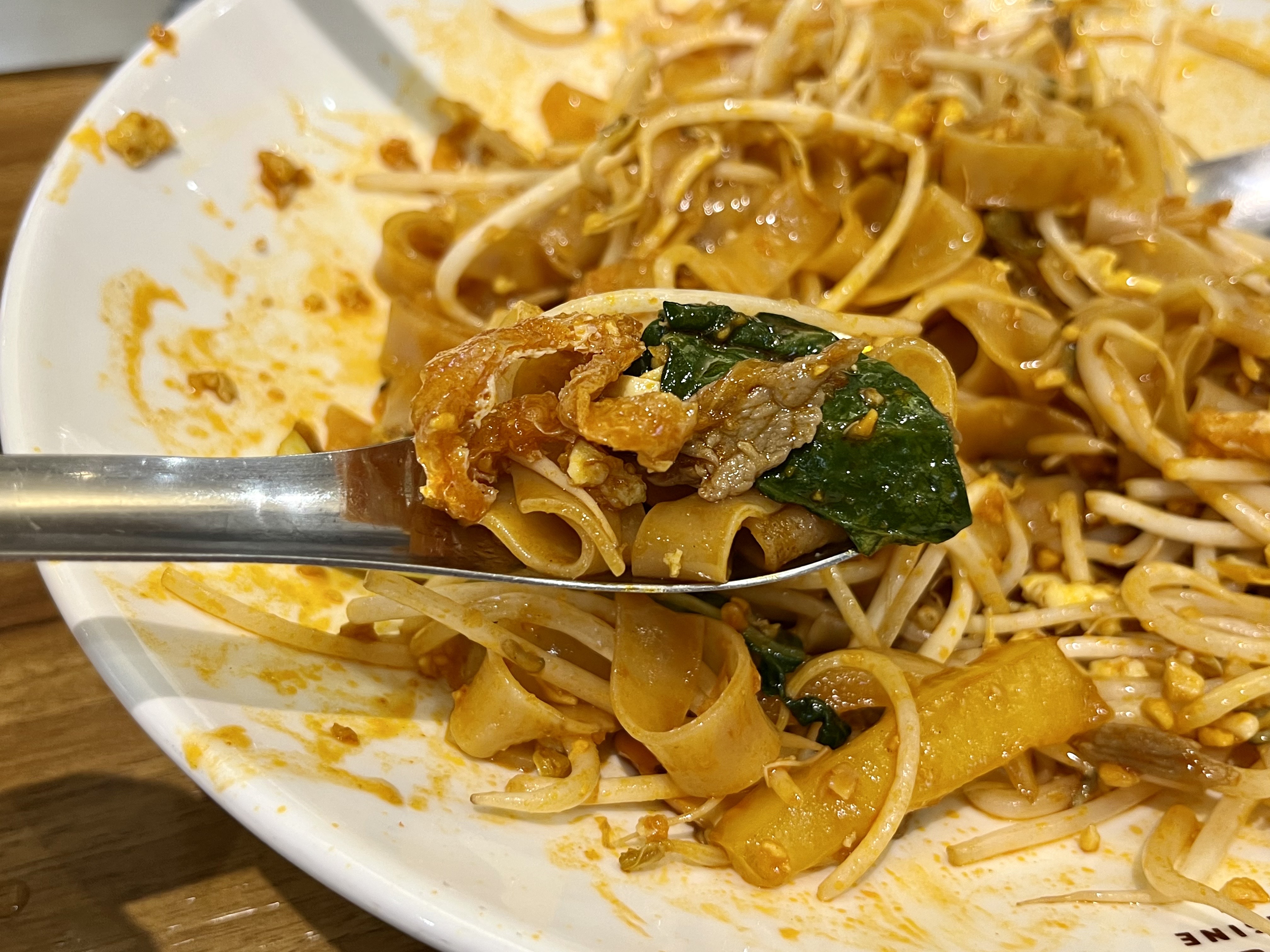 고민 끝에, 오늘은 세 가지 종류의 고기가 들어간 쌀국수와 소고기 팟타이를 주문했습니다.