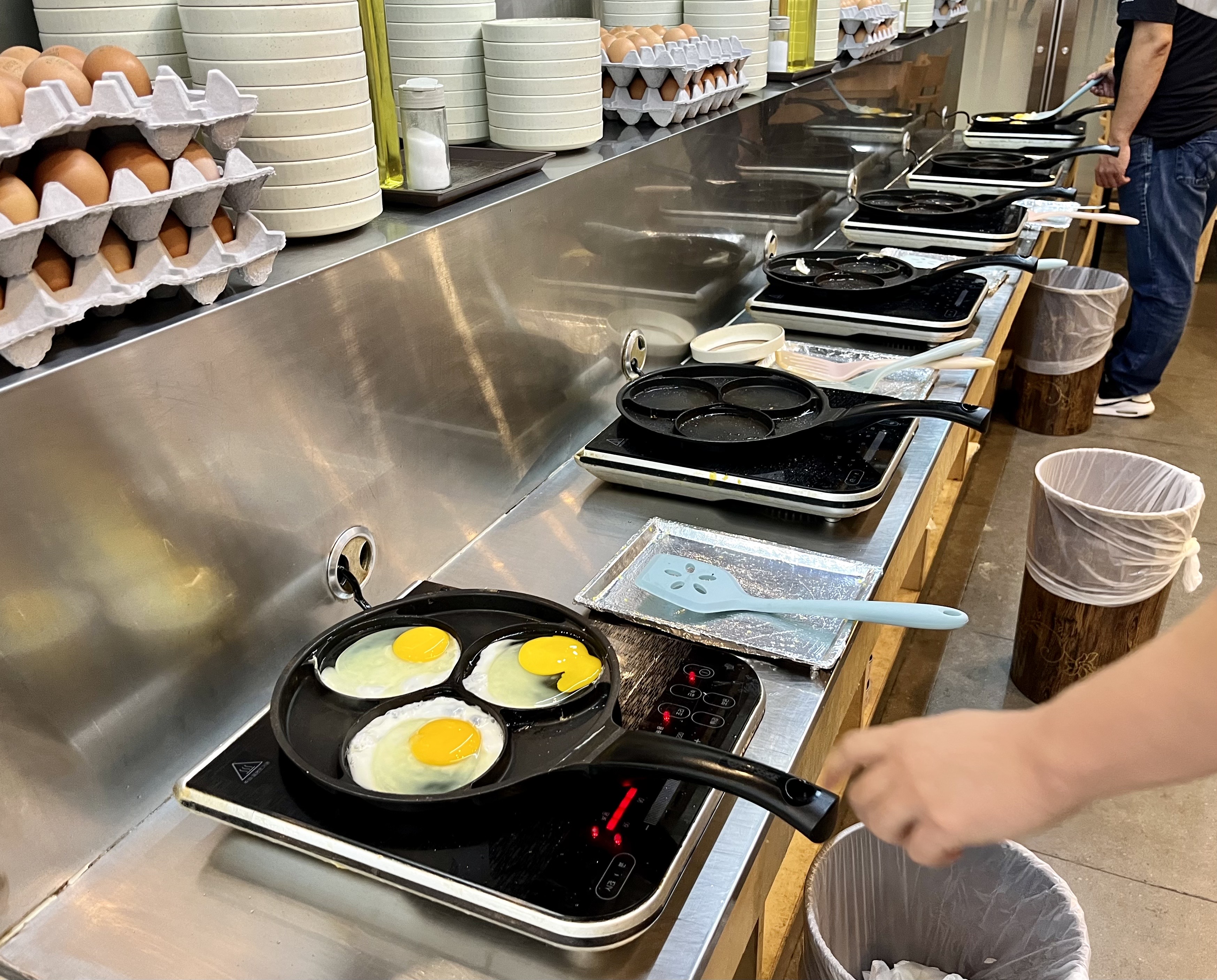 이곳의 최대 장점은 계란 프라이를 무제한으로 먹을 수 있다는 거예요.