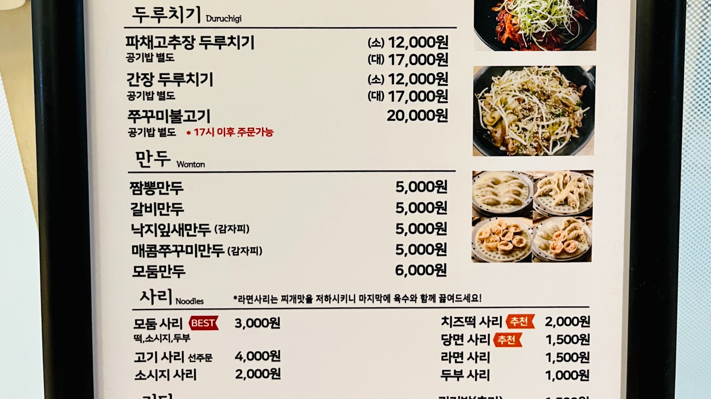 그 밖에도 만두와 다양한 사리들도 있고요.