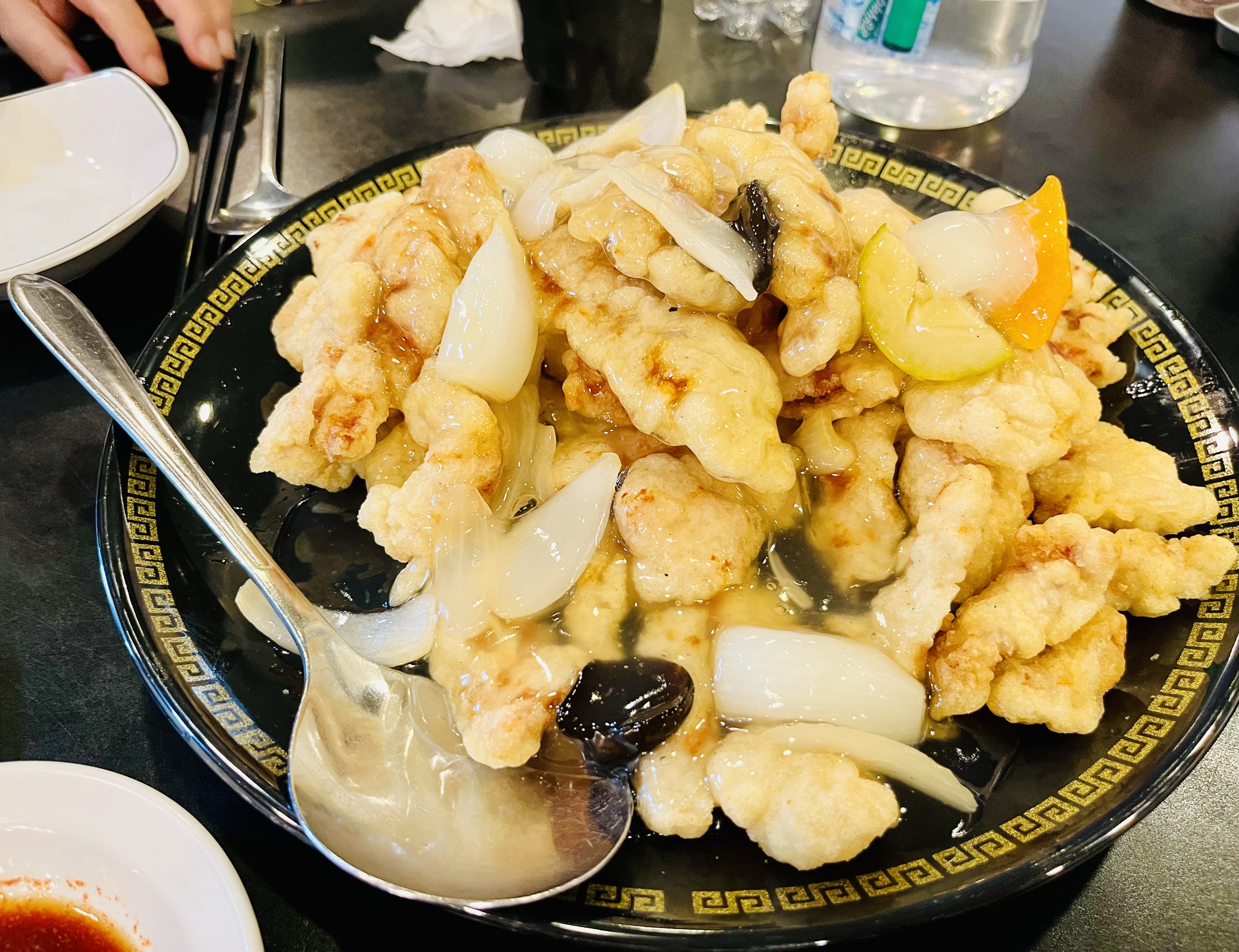 얇은 튀김옷에 살코기가 꽉 차있는 맛있는 탕수육의 정석이었어요.