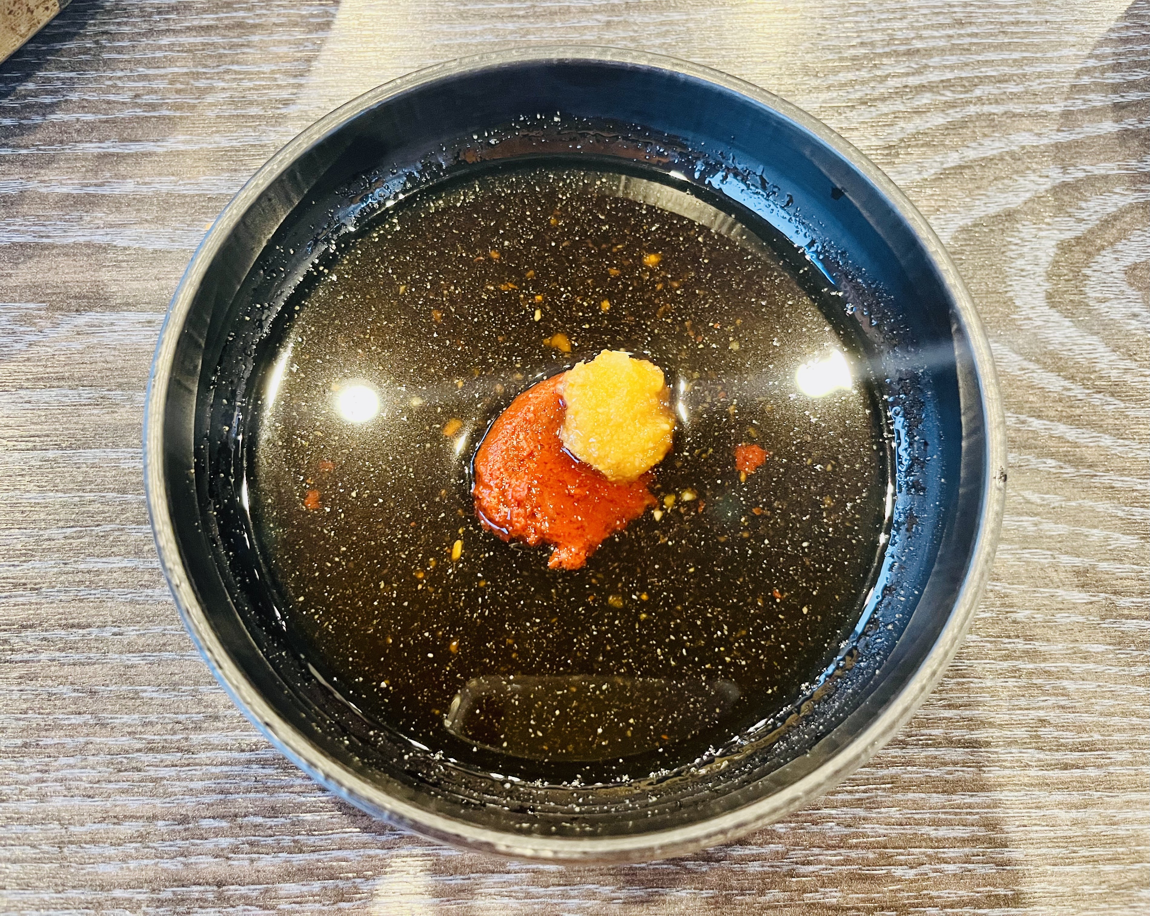 신사우물갈비만의 소스도 있었어요.좀 큰 접시에 간장, 고춧가루, 다진 마늘 등으로 맛을 낸 것 같아요.물갈비 찍어먹으니 아주 꿀맛이더라고요.