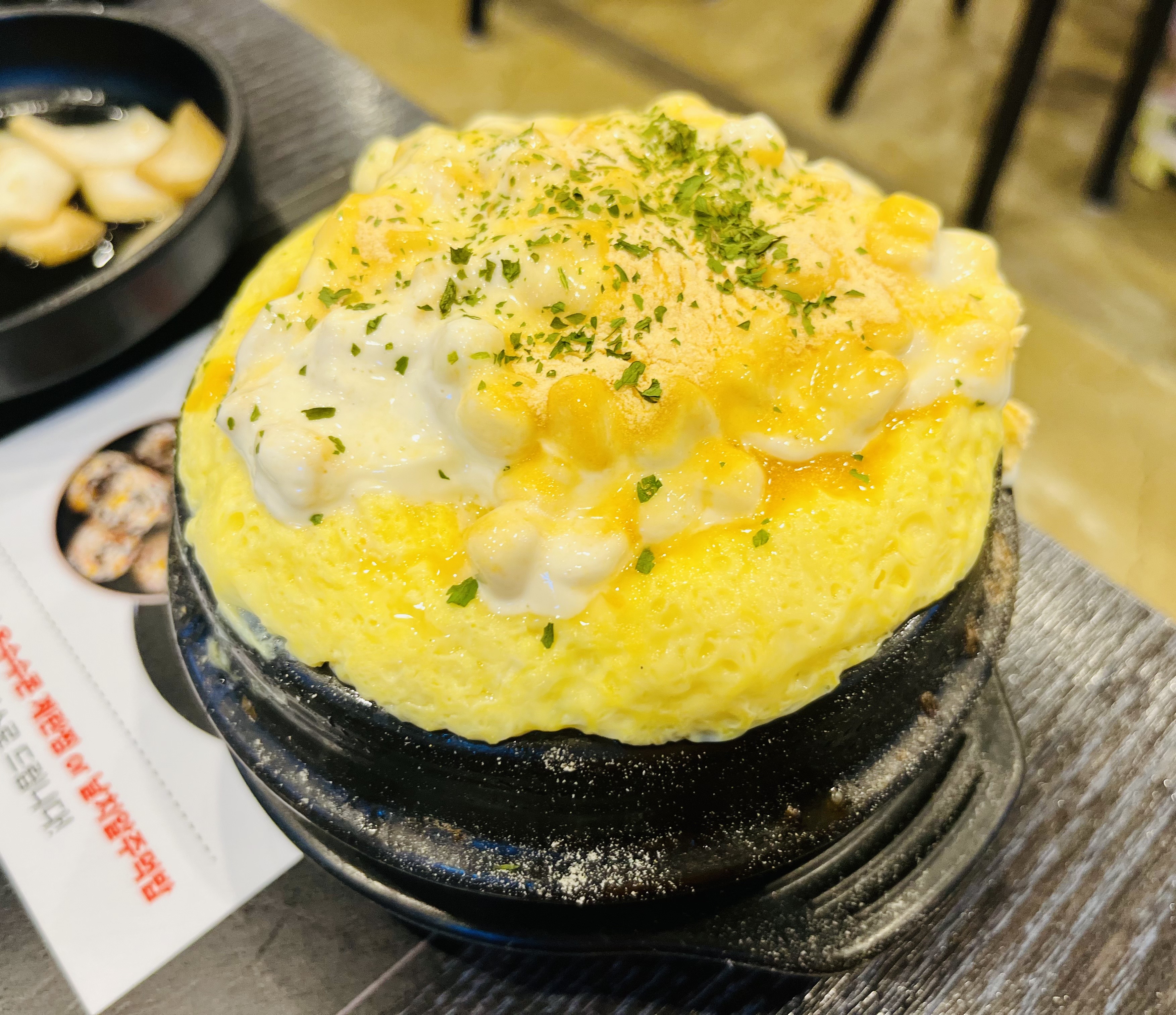 그냥 계란찜도 맛있는데, 옥수수콘이 올려져 있다니 행복해지는 맛이었습니다.