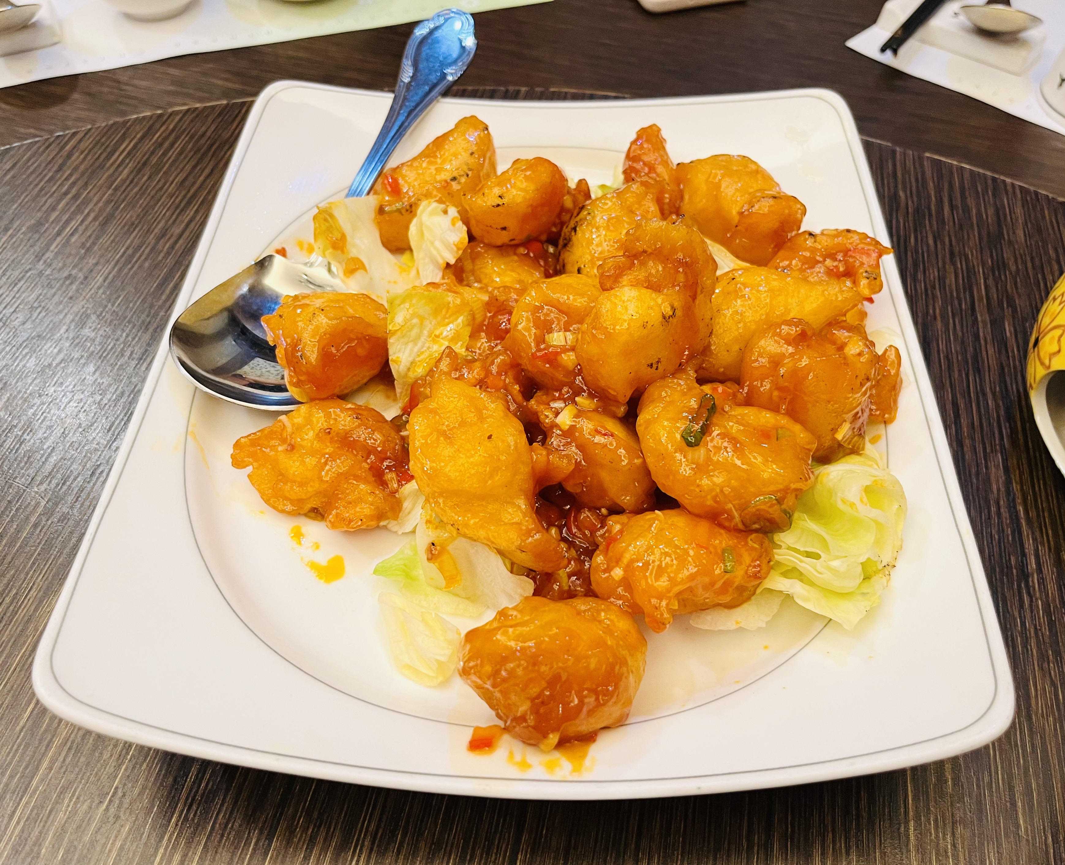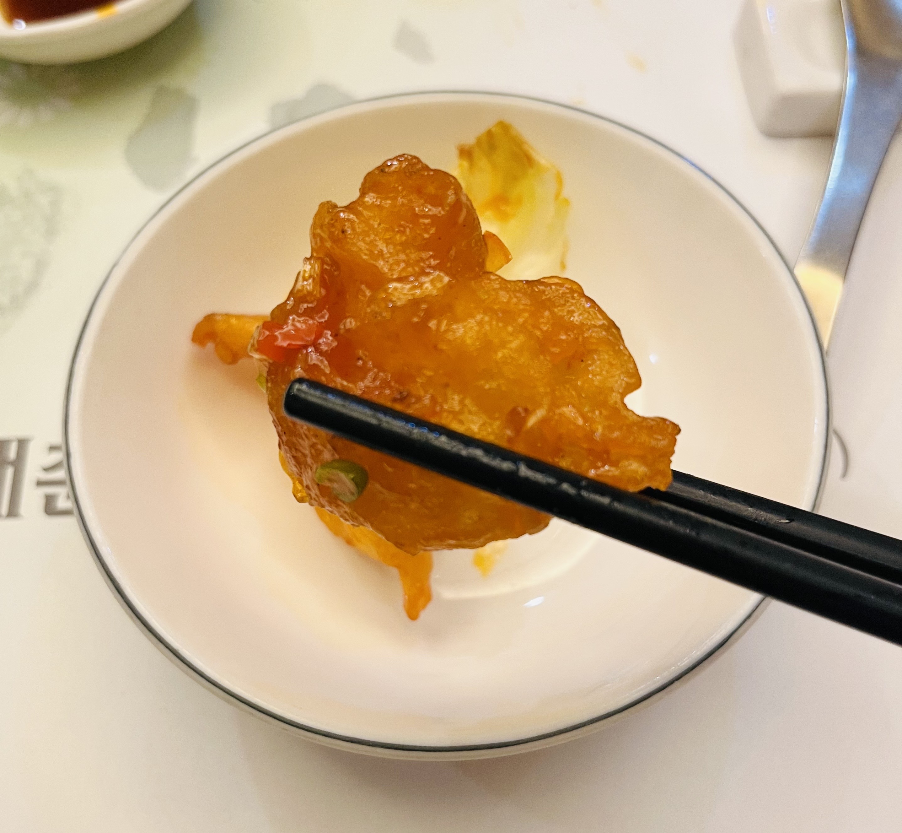 매콤한 칠리소스에 바삭한 튀김옷이 탱글탱글한 새우와 아주 잘 어울려요.