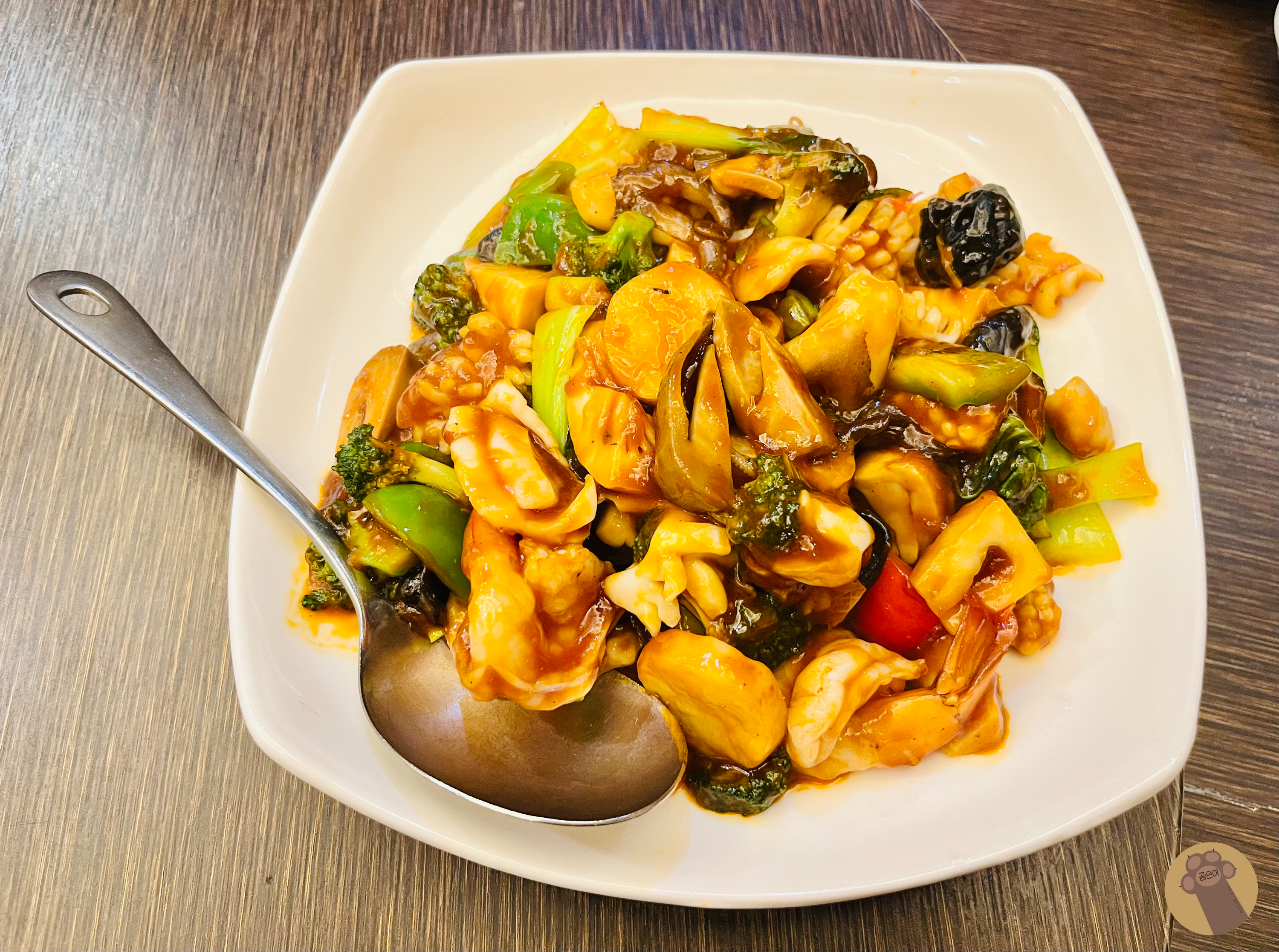 여러 가지 채소와 버섯, 해산물의 조화가 돋보이는 요리였습니다.