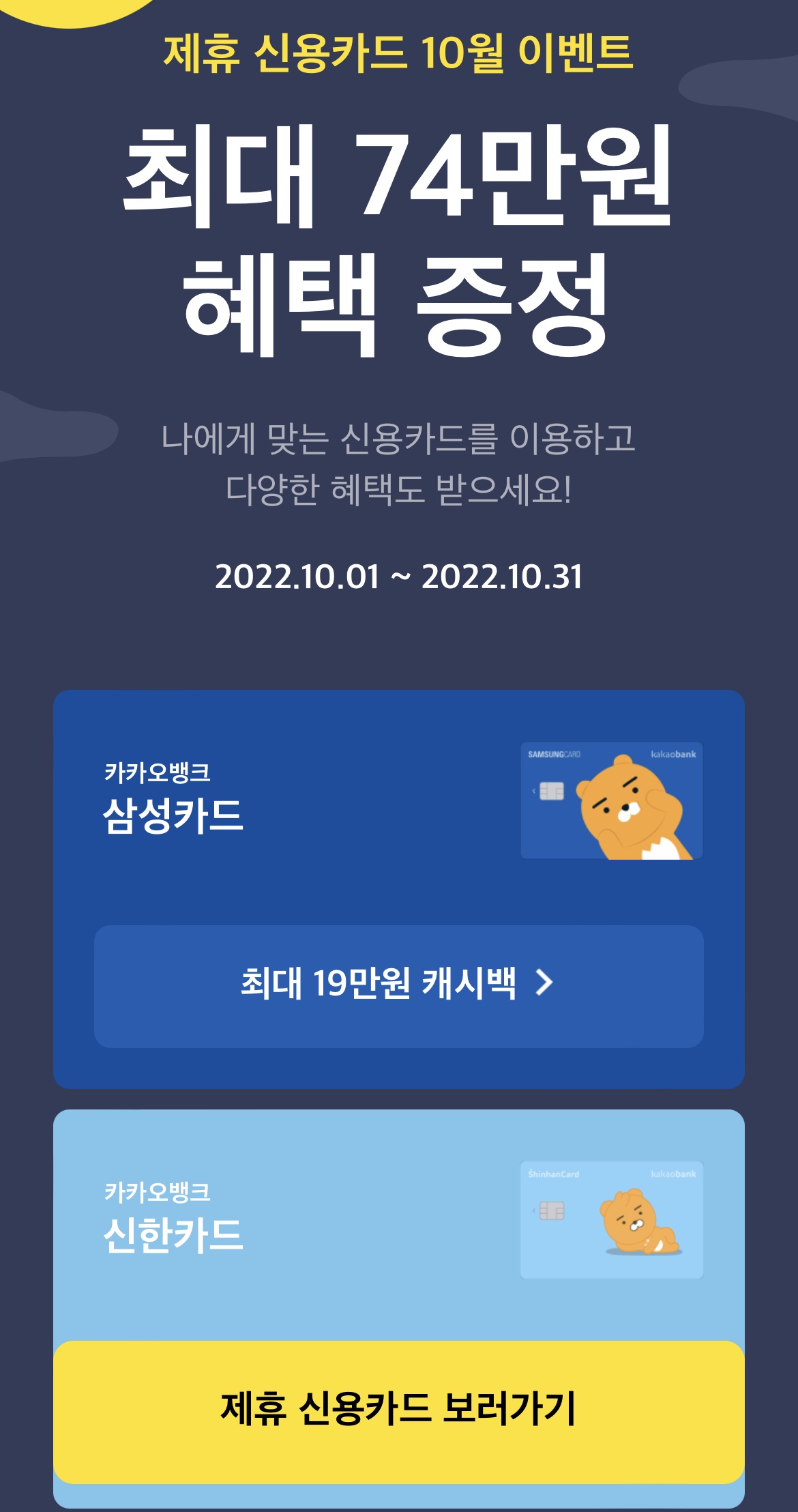 지금도 카카오뱅크나 토스, 케이뱅크등 다양한 곳에서 매월 신용카드 발급 이벤트를 하고 있어요.