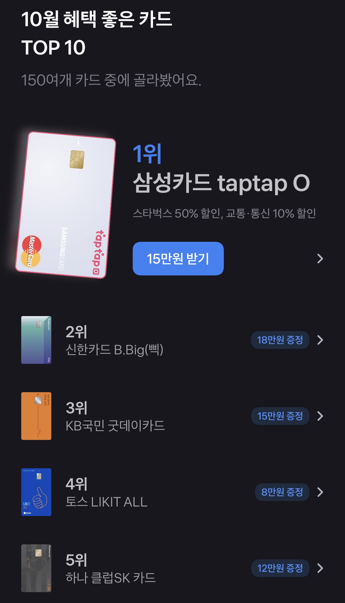 저는 신용카드 쓸 때, 꼭 토스나 카뱅 등의 신용카드 발급 이벤트를 통해서 만드는 편이에요.