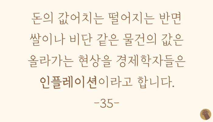 20여 년 전에는 1,000원이면 짜장면 한 그릇을 사 먹을 수 있었는데, 지금은 6~7,000원을 주어야 사 먹을 수 있는 것처럼 돈의 가치가 떨어지는 현상을 인플레이션이라고 해요.