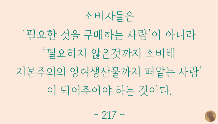 무언가를 넘치게 만들고 누군가가 소비해야만 자본주의 사회는 돌아간다는 거예요.