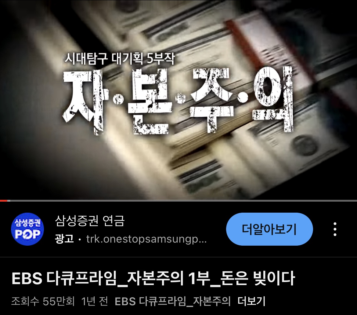 자본주의는 EBS에서 제작한 다큐멘터리 프로그램인데 유튜브에서 흥미롭게 본 기억이 나요.