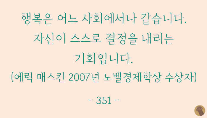 행복은 지극히 주관적이지만 한 가지 객관적인 사실이 있다면 선택의 자유가 있느냐는 거예요.
