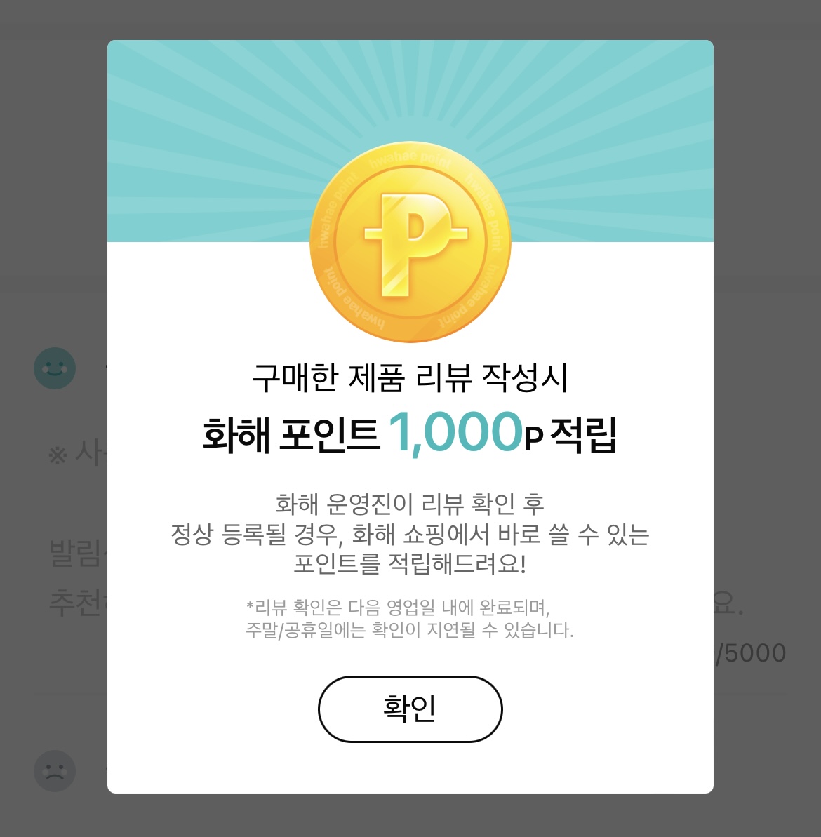 화해 쇼핑에서 화장품을 구입했다면, 리뷰를 쓰고 포인트를 무려 1,000원이나 받을 수 있어요.