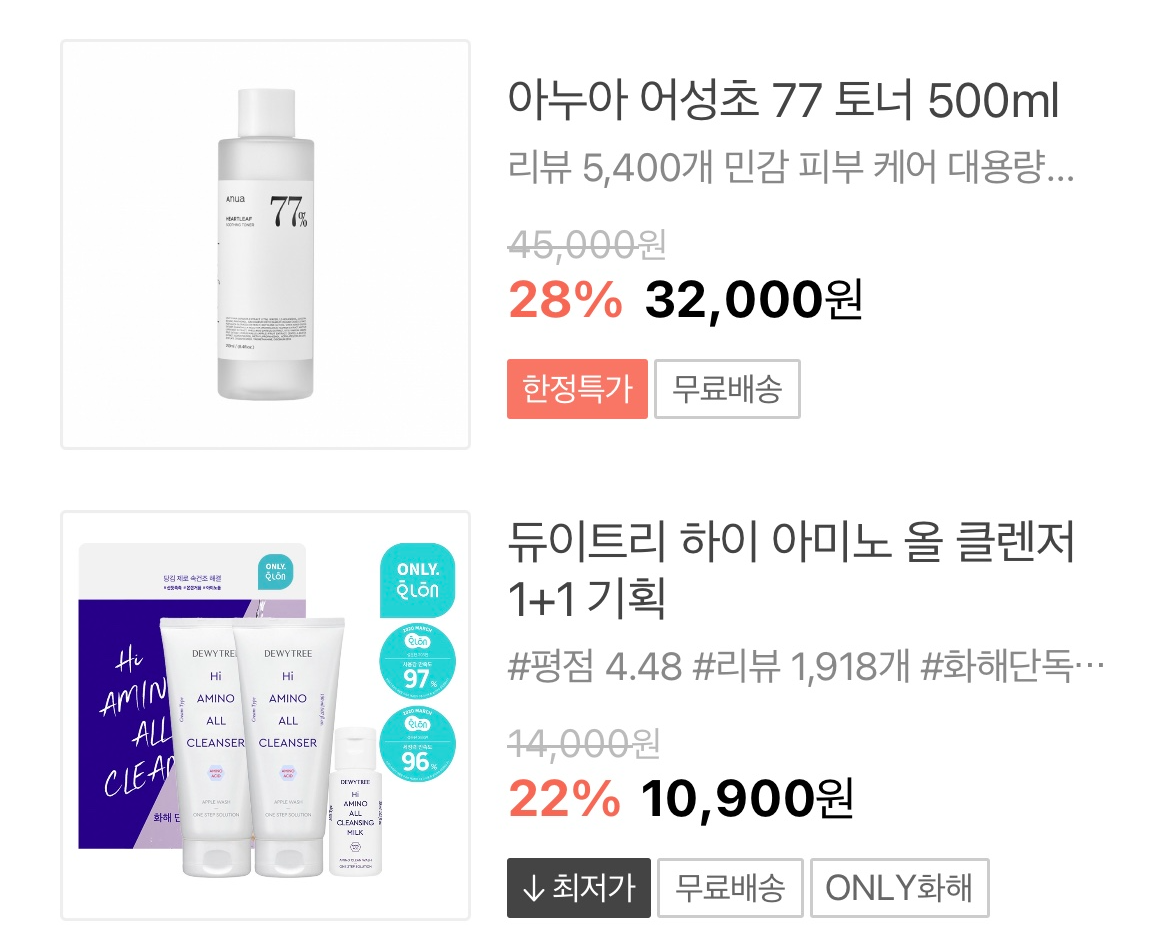 모든 할인 혜택을 적용하면 다른 쇼핑몰 최저가보다도 더욱 저렴하게 화장품을 구매할 수 있답니다.