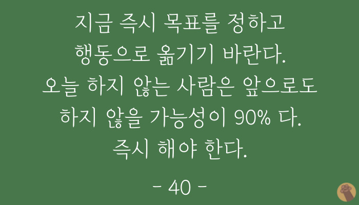 지금은 움직이지 않지만 언젠가는 할 거라 생각했다면 결국 하지 않을 가능성이 커요.