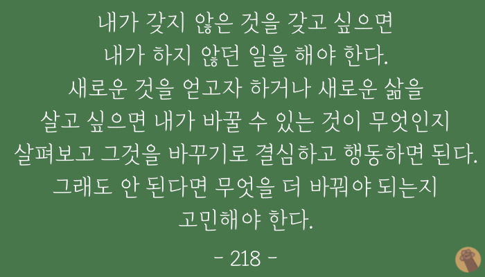 변화하지 않으면서 언젠가는 내 품에 와서 안기겠지라고 생각하면 그건 실현되지 않겠죠.