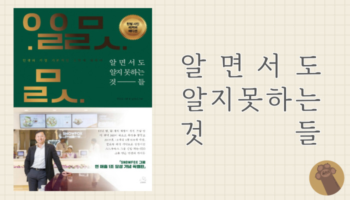 지금까지 '돈의 속성'이라는 책으로 유명한 지은이 김승호의 「알면서도 알지 못하는 것들」이었습니다.