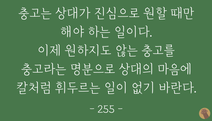 혹시 나도 그 사람을 생각해주는 척 말로 상처를 주지 않았는지 돌아보게 되었습니다.