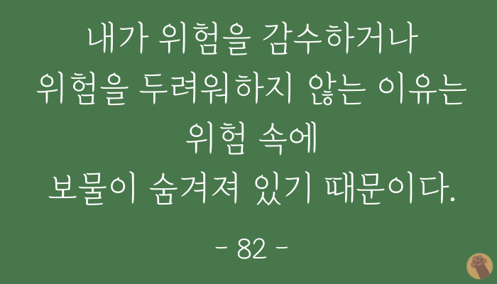 위험과 도전 속에 보물이 숨겨져 있다는 사실은 성공하는 사람들만이 아는 사실이라고 해요.