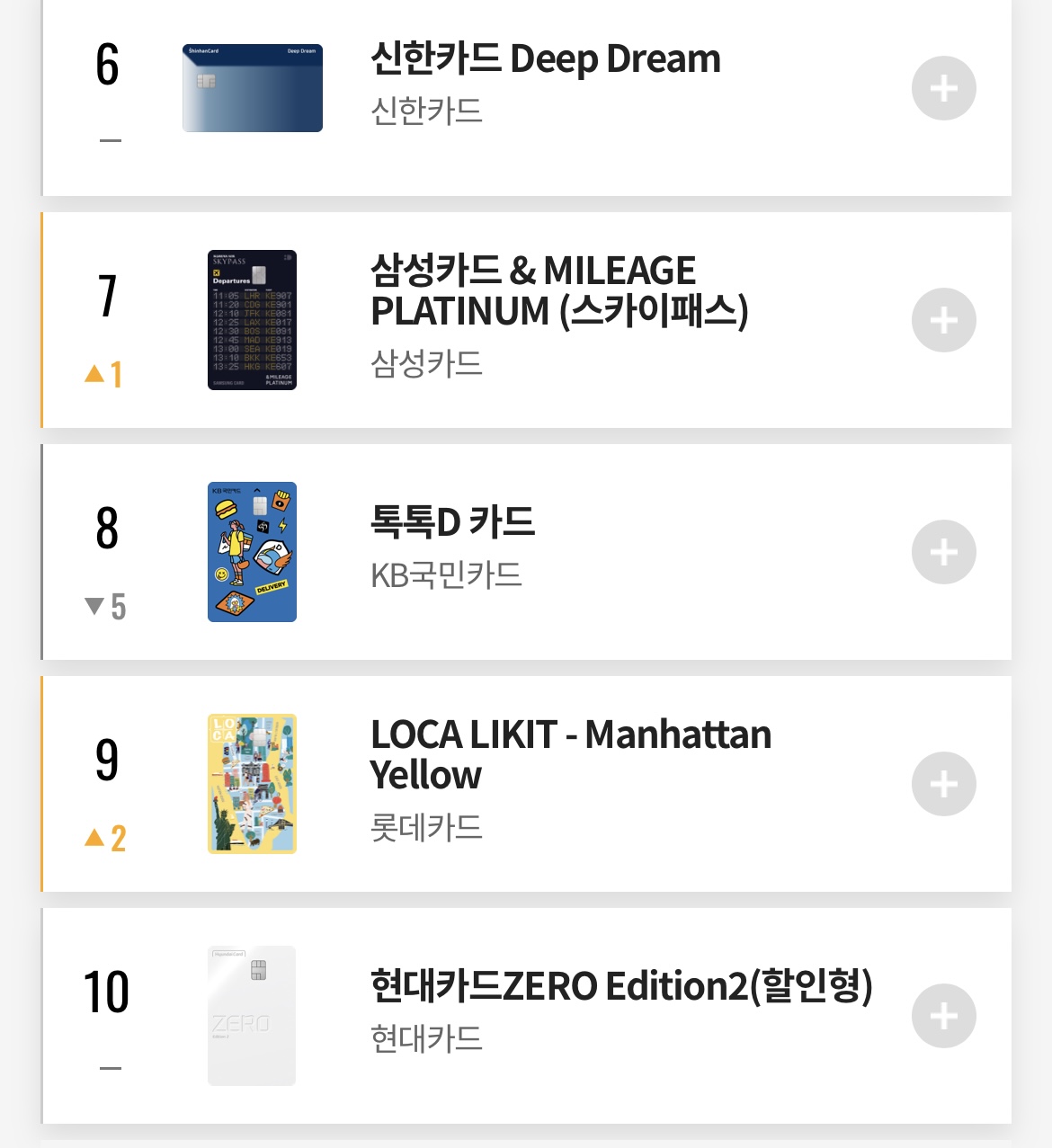 이번 주엔 삼성카드가 1위를 했네요.