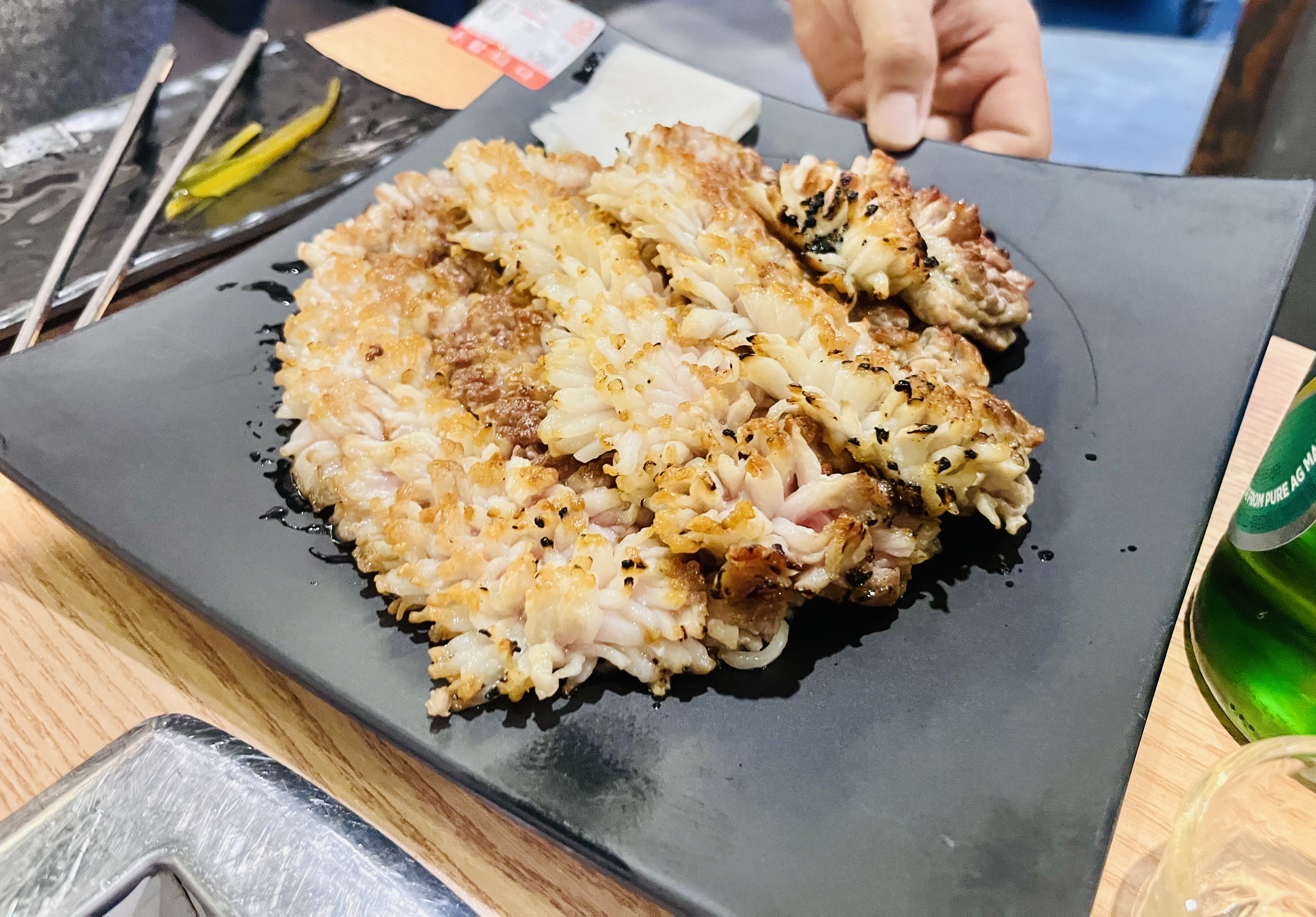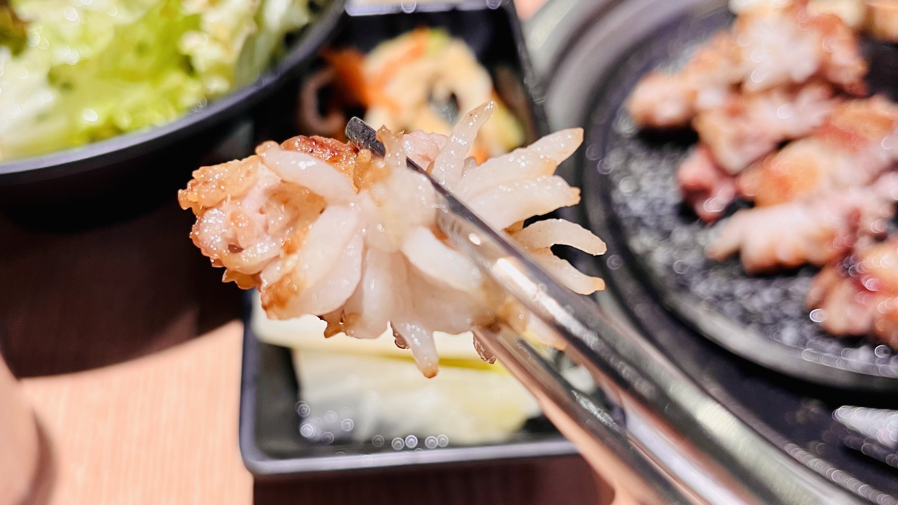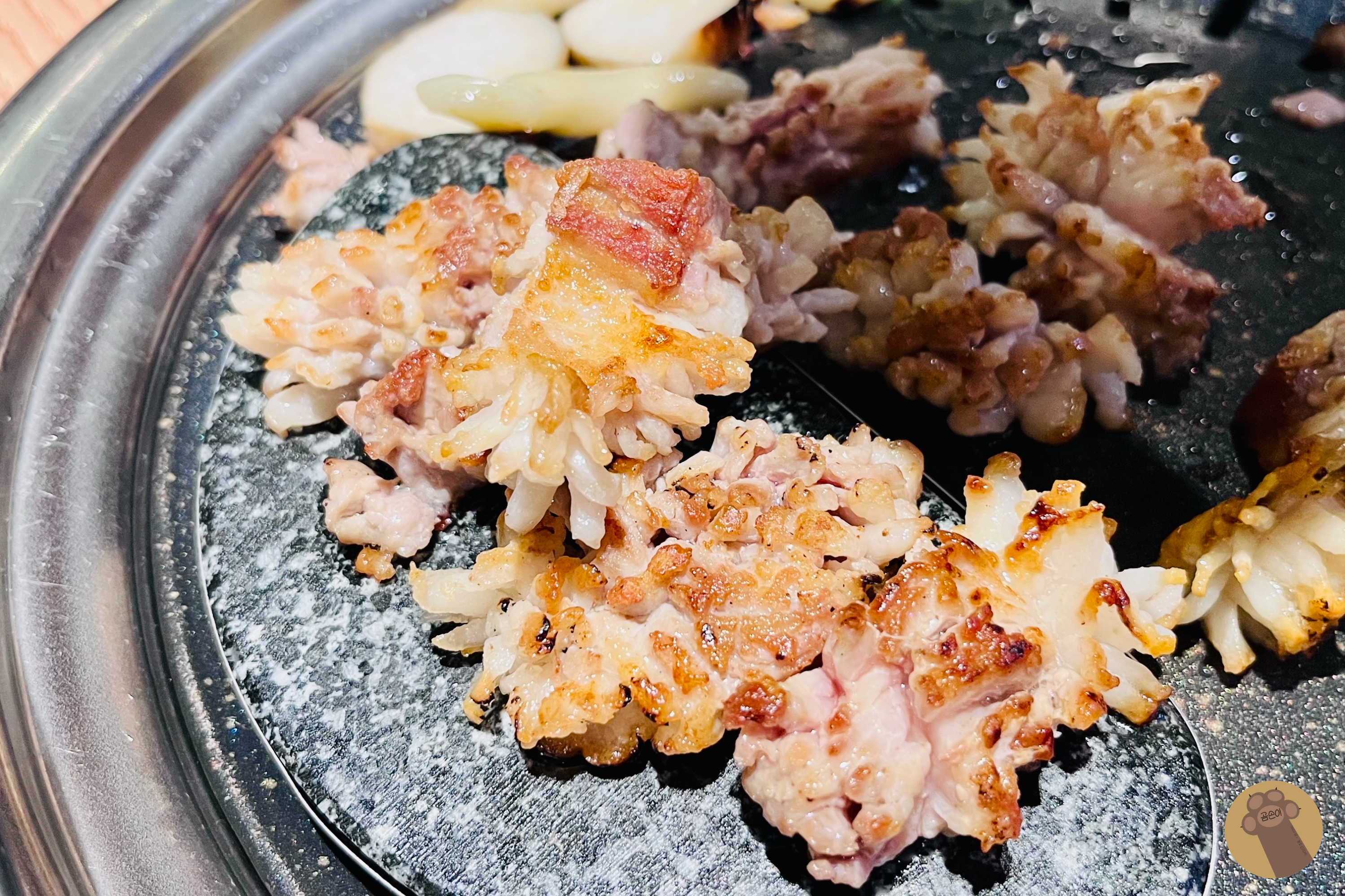 오징어 같기도 한 독특한 모양뿐 아니라 맛도 일반 삼겹살과는 달랐어요.엄청 엄청 부드럽고 고소해요.두꺼운 삼겹살 질겨서 잘 안 먹는 사람들이 너무나 좋아할 듯요.눈이 번쩍 뜨이는 맛입니다😋