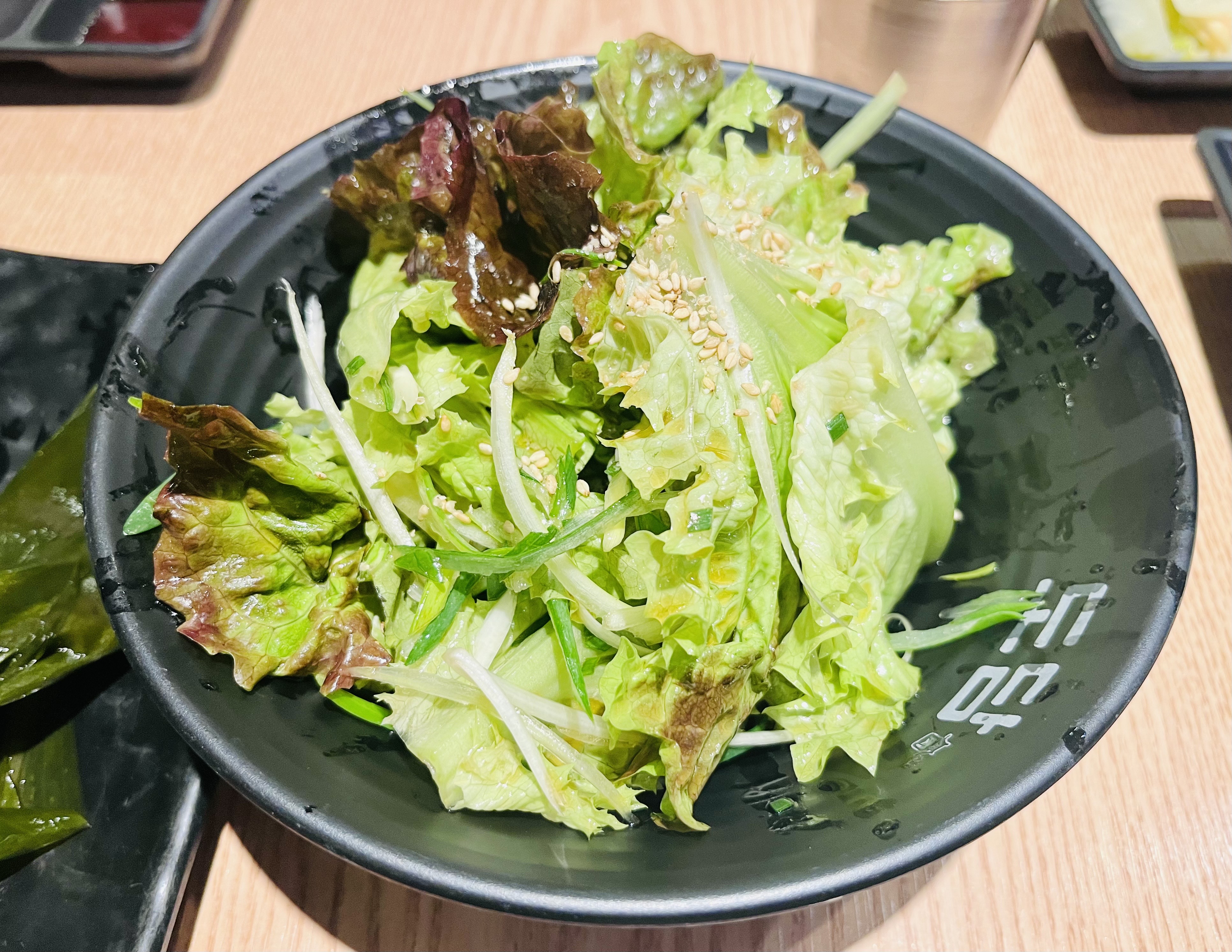 명이나물, 파절이 대신 나오는 상추와 파채 샐러드,