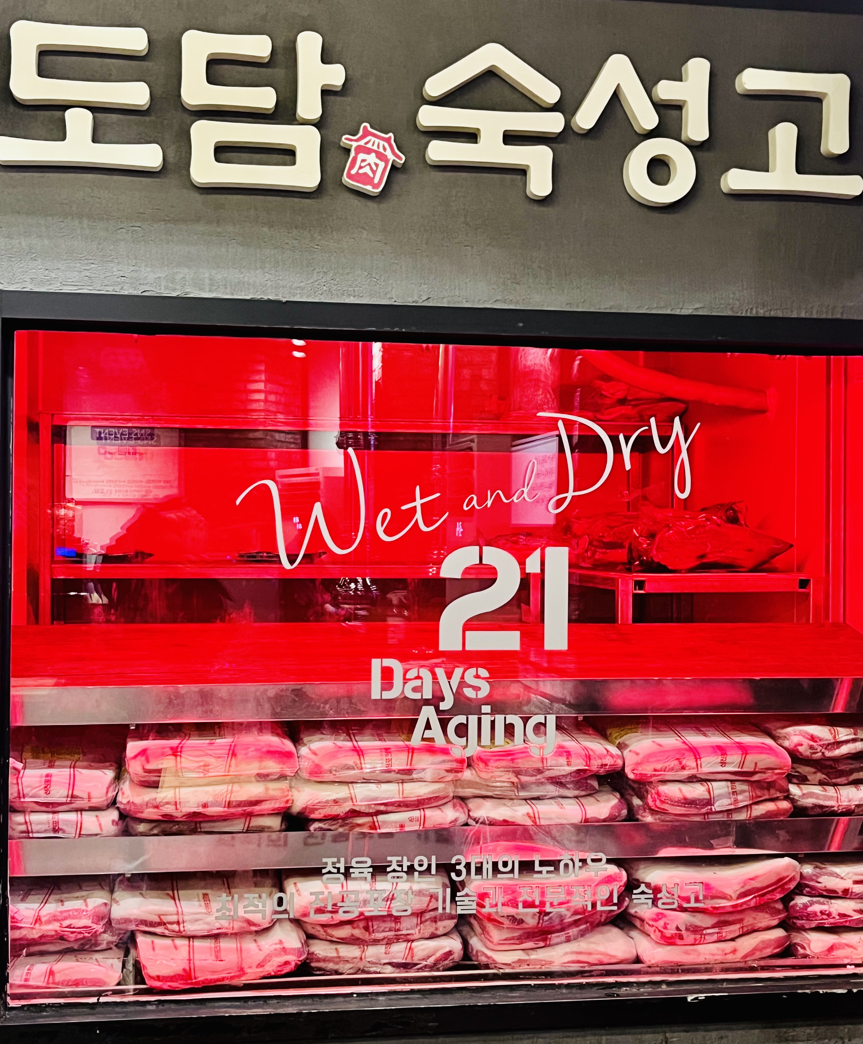 안으로 들어가니 고기 숙성고가 한쪽에 따로 있고 고기를 초벌 하는 곳도 있어 다른 고깃집과 다른 느낌이었어요.