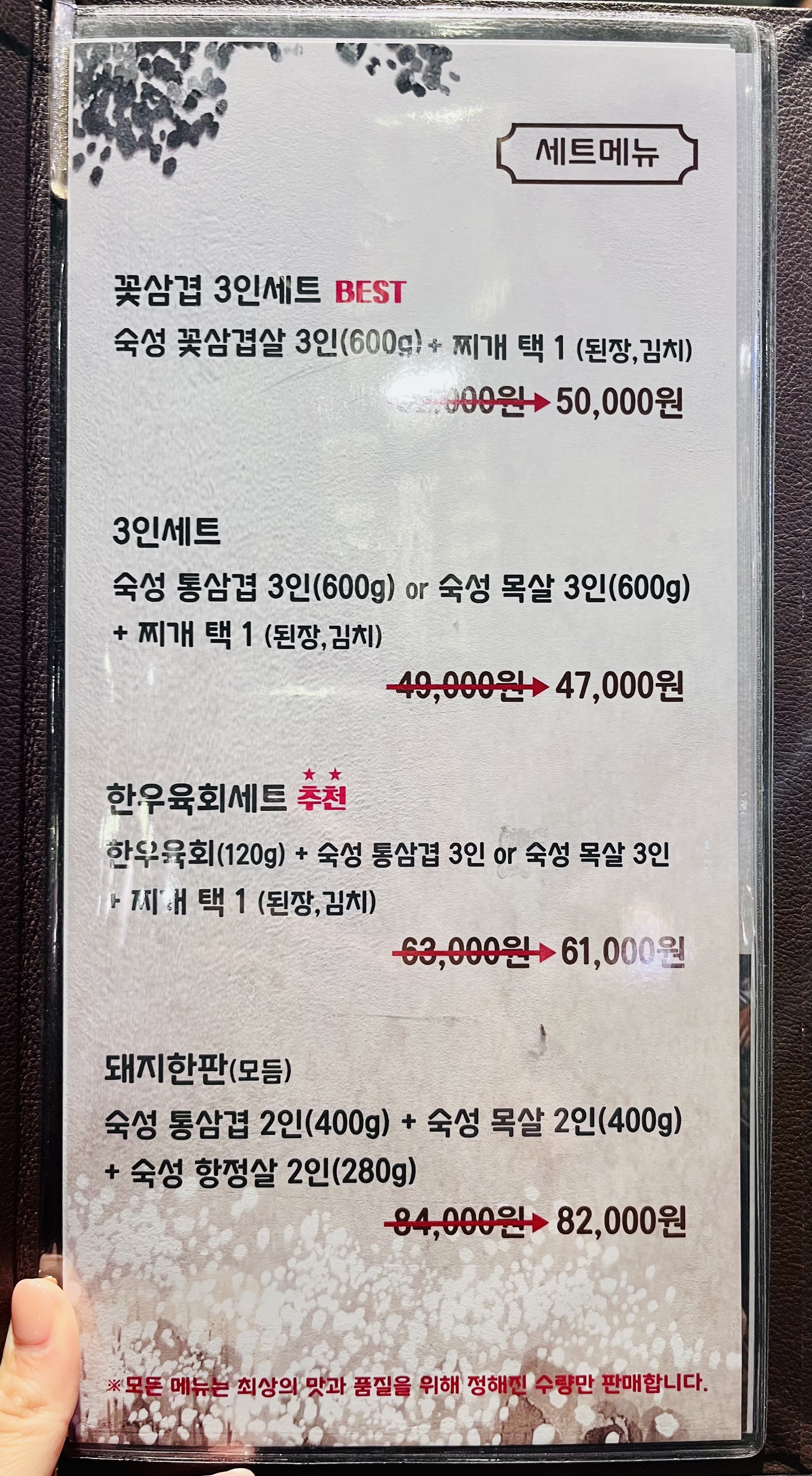 꽃삼겹만 달라고 했더니 세트가 더 저렴하다며 세트를 추천해 주시더라고요.